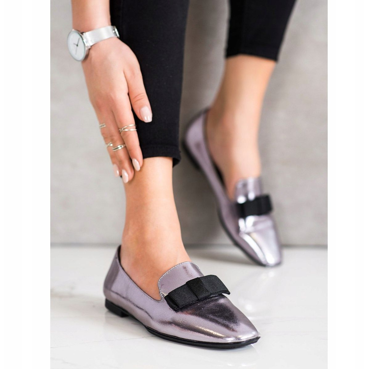 Un elemento característico de este modelo es un lazo decorativo hecho de una cinta ancha negra, que añade un encanto único a los zapatos. Las punteras muy redondeadas y el suave talón incorporado garantizan no sólo una apariencia estética, sino también comodidad de uso. Gracias al cierre tipo slip-on, ponérselos y quitárselos es puro placer.