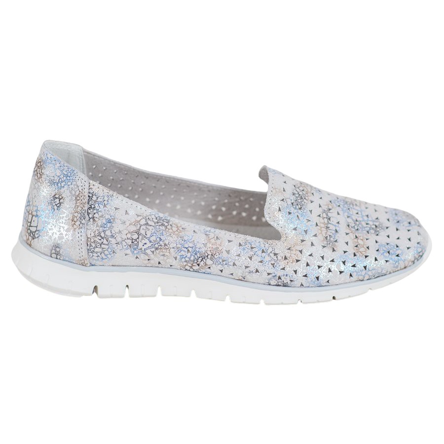 Los Lords de piel VINCEZA en versión multicolor son una propuesta que aportará frescura a cualquier estilismo veraniego. Fabricados en piel natural de alta calidad, estos modernos mocasines se distinguen no sólo por su estética, sino también por su extraordinaria comodidad. Perfectos para los paseos de vacaciones, los zapatos Lords están equipados con una suela sintética suave con banda de rodadura, que garantiza tracción y comodidad en cada paso.