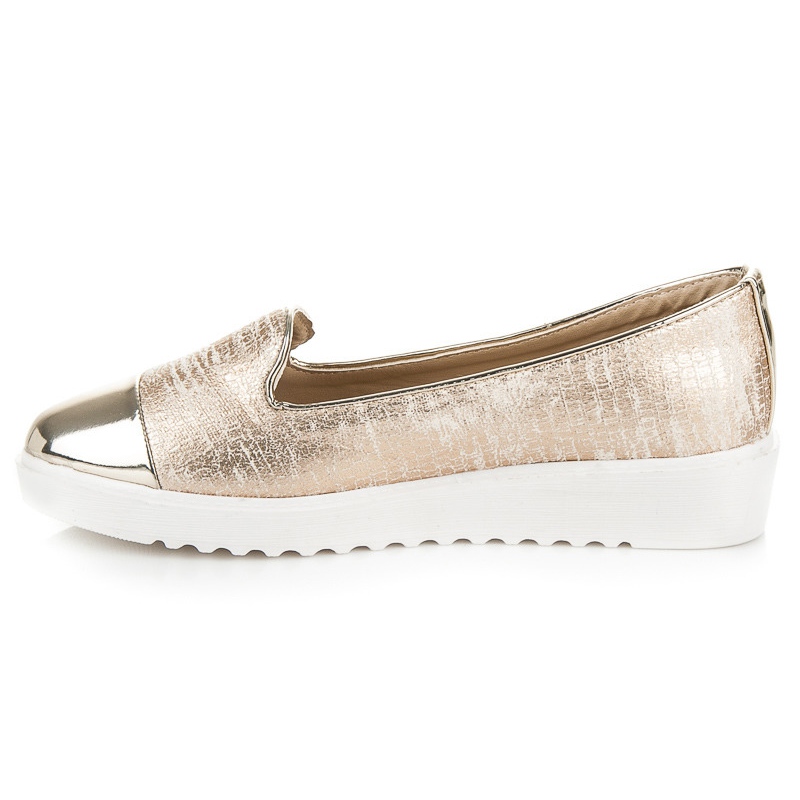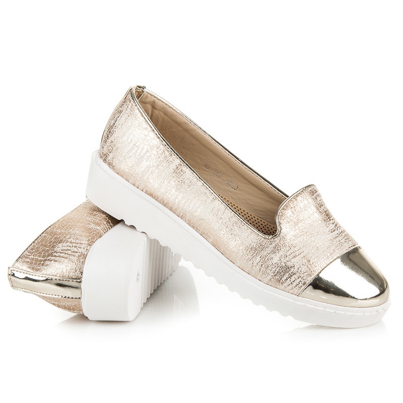 Descubra los Golden Lords extremadamente elegantes y modernos en la plataforma del fabricante Nio Nio. Estas bailarinas únicas combinan comodidad y estilo, lo que las convierte en la elección perfecta para cualquier ocasión. Fabricados en cuero ecológico de alta calidad, garantizan durabilidad y apariencia atractiva.