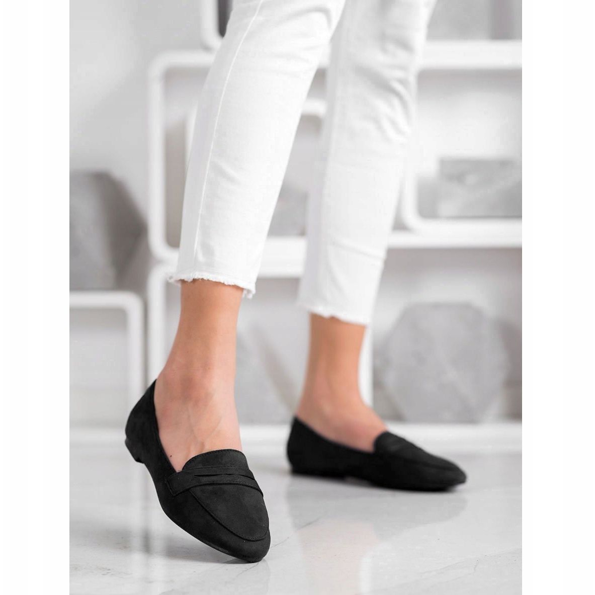 Los señores negros tienen un tacón plano y un tacón suave y reforzado, lo que garantiza comodidad todos los días y durante diversas celebraciones. Su estilo universal e informal hace que combinen perfectamente con muchos estilos, tanto informales como más elegantes. Una suela de plástico con banda de rodadura garantiza estabilidad al caminar y la puntera de almendra añade un carácter clásico.