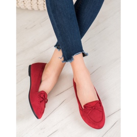 Llama la atención la parte superior hecha de gamuza ecológica de alta calidad en un color rojo jugoso, y las costuras decorativas en la parte delantera añaden elegancia. Las punteras son muy redondeadas, lo que garantiza comodidad de uso, y un delicado lazo colocado en la parte superior hace que los zapatos luzcan especialmente encantadores.