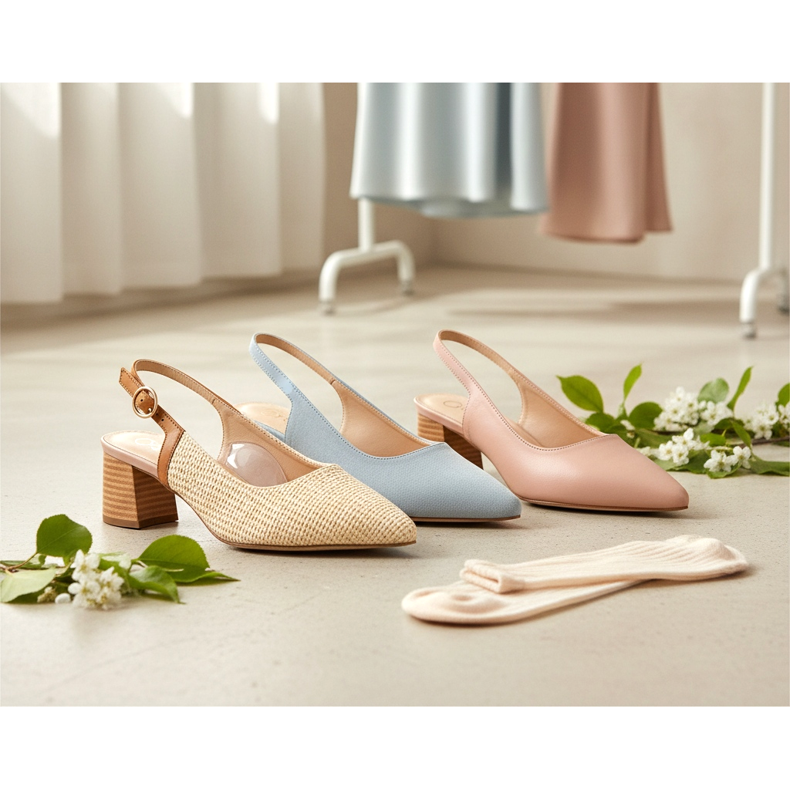 Los zapatos slingback con tacón bajo y delgado de unos 3-5 cm son un modelo especialmente popular en 2026. Combinan elegancia femenina con comodidad para caminar durante todo el día, por lo que se usan con entusiasmo en la oficina y en las salidas diarias. Disponibles con varias formas de nariz (cuadrada, puntiaguda y redondeada), le permiten adaptar el estilo a su ojo.