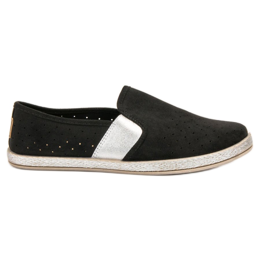 Descubra la comodidad y el estilo con los slipons de mujer negros calados de la marca Mckeylor. Confeccionados en piel serraje ecológica de alta calidad, son una combinación perfecta de elegancia y libertad. Su diseño único, complementado con rayas plateadas de goma en los laterales, les da un carácter moderno, perfecto para el estilo diario.