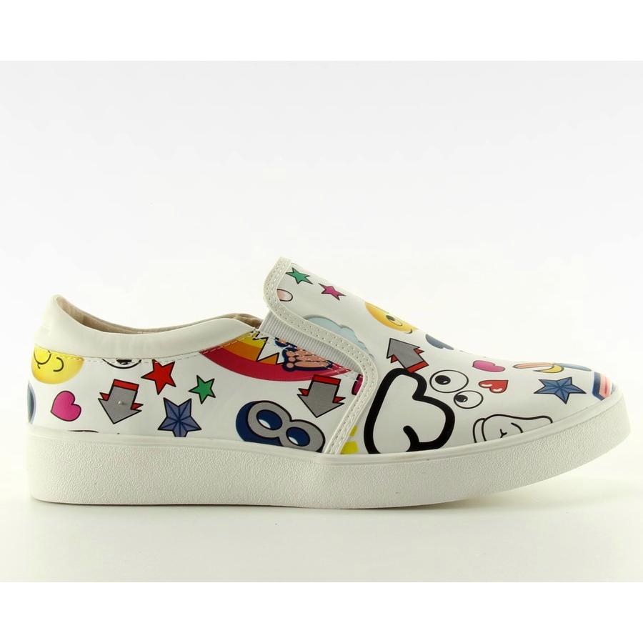 Zapatillas slip-on en una versión excepcionalmente original. Tienen un patrón colorido y cómico que hace que sea imposible quitarles la vista. Confeccionada en piel ecológica, interior forrado con tela. Los zapatos son ligeros, cómodos y se ven fantásticos en la pierna. ¡Sobresalir entre la multitud!