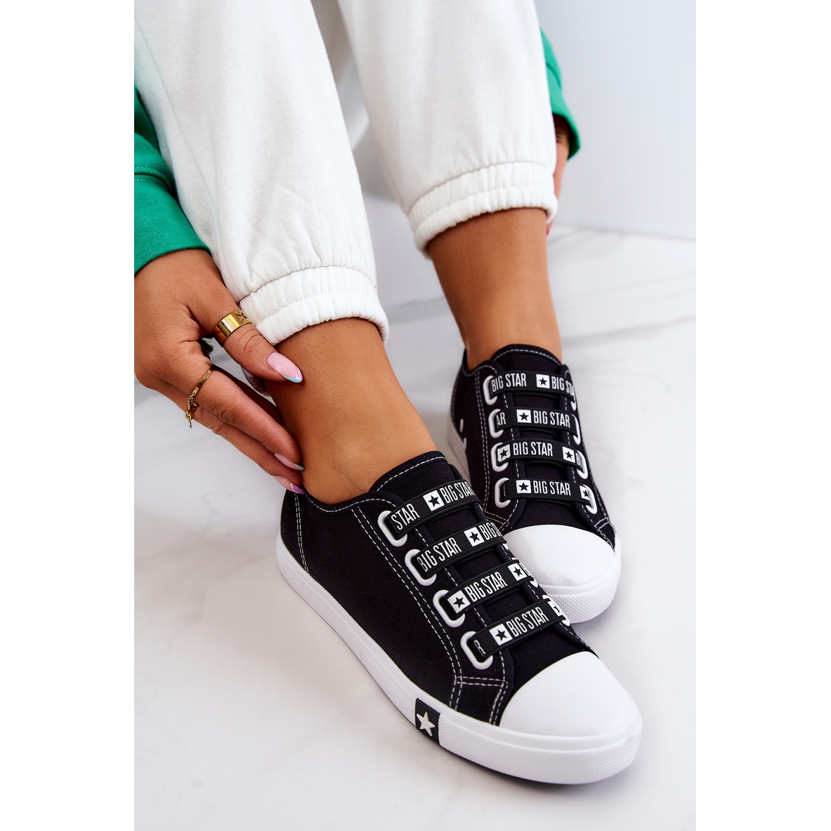 Detalles: Sneakers Mujer Con Puños Big Star HH274098 Negro