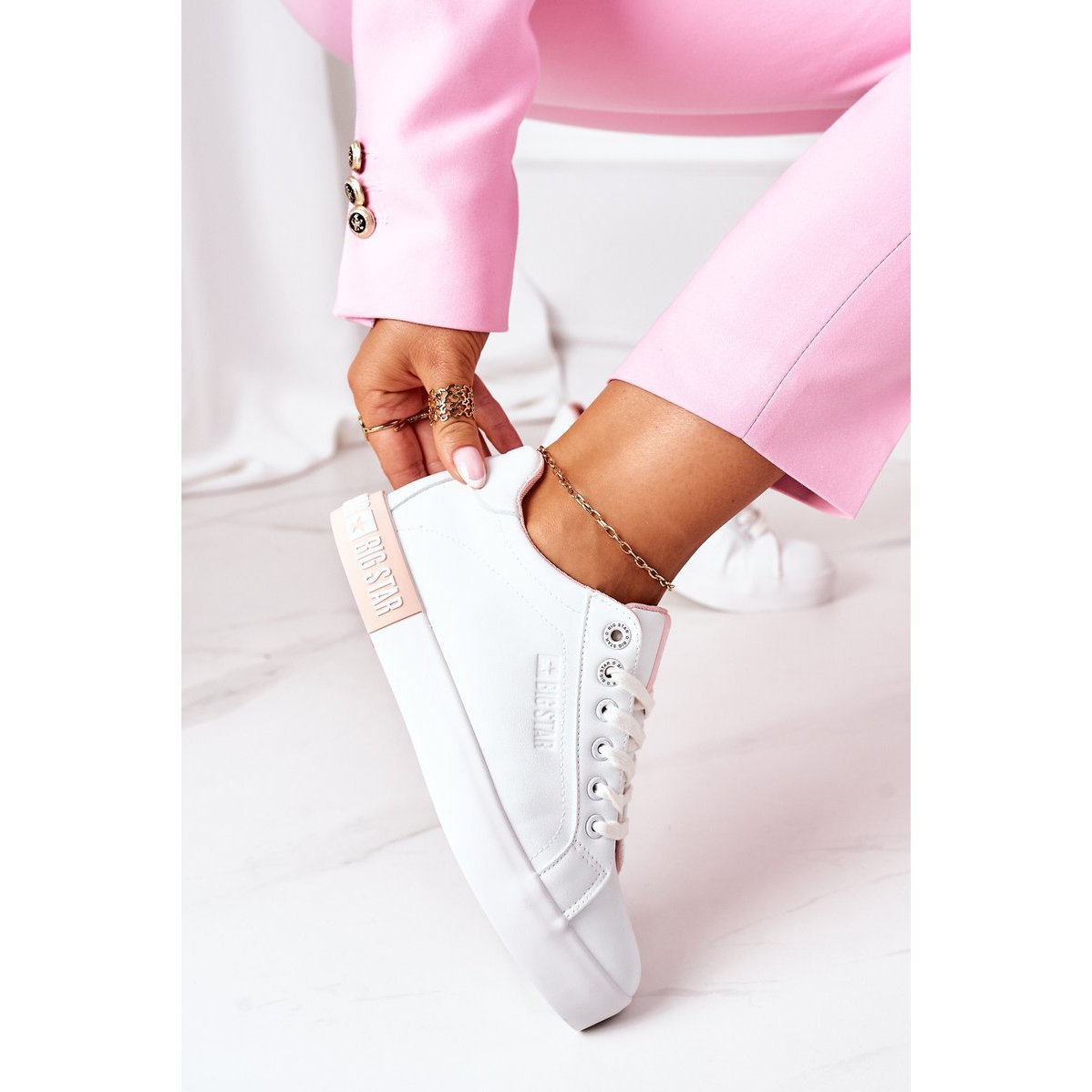 Detalles: Sneakers Mujer Piel Big Star II274033 Blanco-Rosa