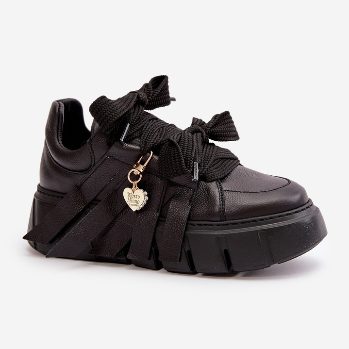 Este modelo se distingue por su original cordón grueso, enriquecido con dos encantadores corazones, que aportan un toque sutil y romántico. Gracias a sus colores universales, las zapatillas negras combinan perfectamente con conjuntos informales y streetwear más atrevidos.