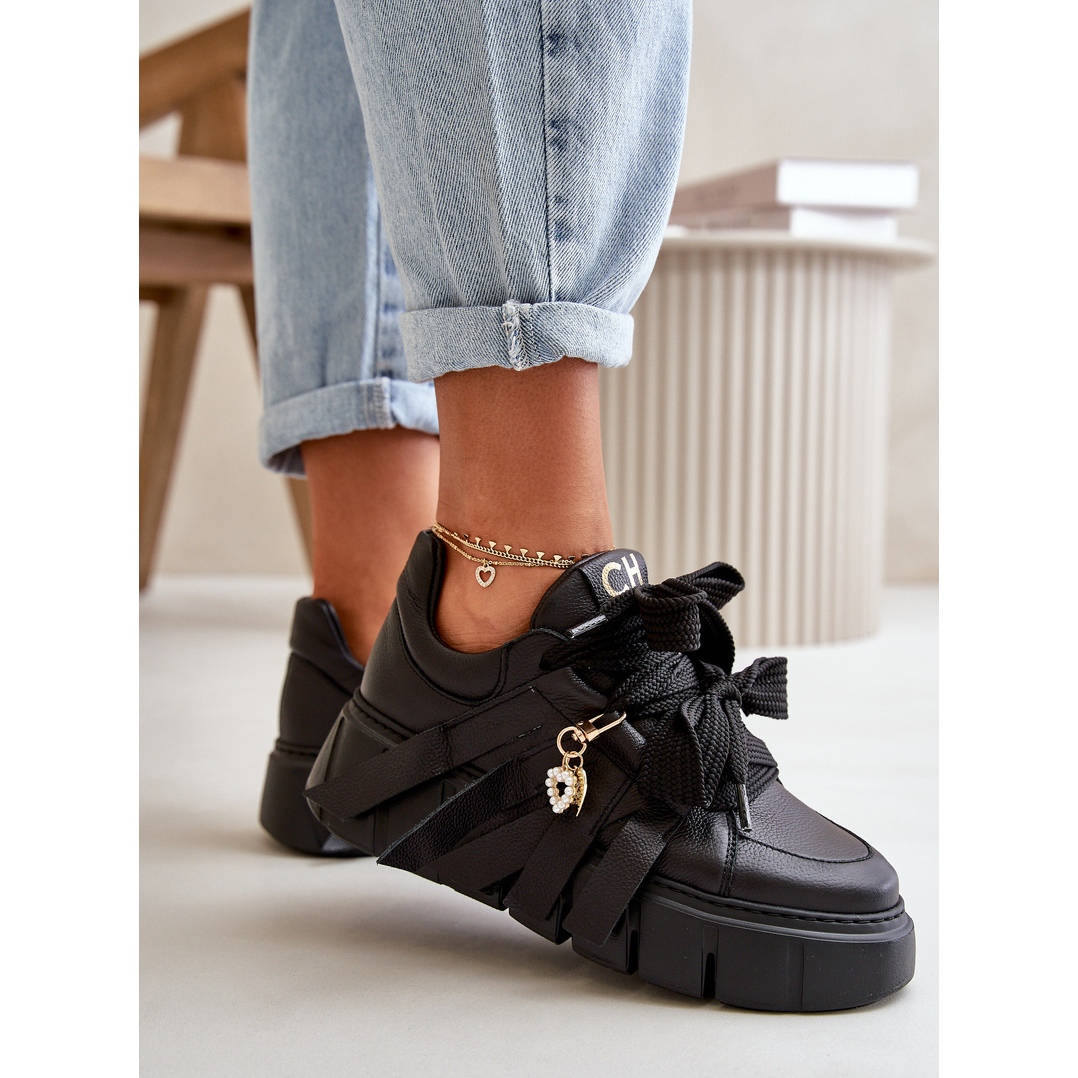 Detalles: Sneakers Mujer Piel Con Plataforma Negro CheBello 4568