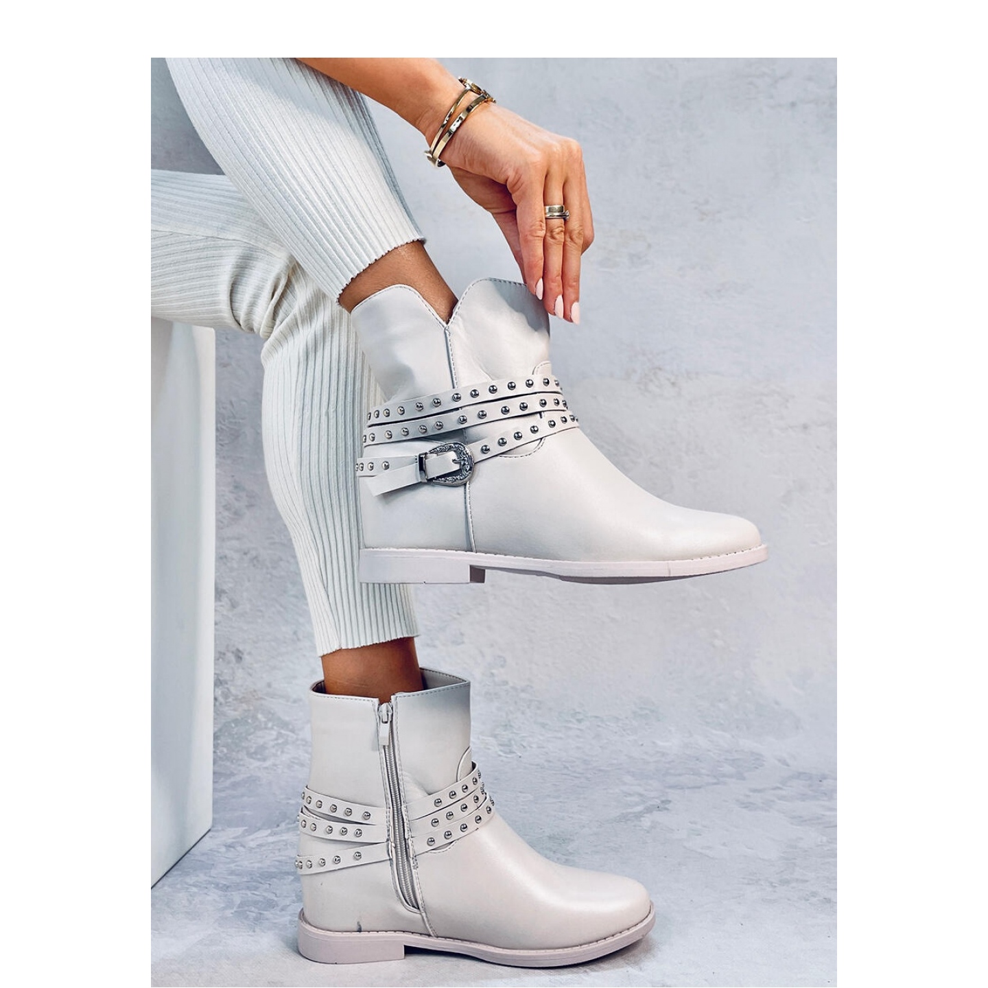 Botines de mujer de piel flor con cuña oculta de 6 cm de altura. Si buscas zapatos cómodos y a la moda, ¡has venido al lugar indicado! El modelo de botas cowboy con llamativa hebilla y tachuelas seguramente llamará la atención... El práctico cierre con cremallera lateral permite calzarlas de forma rápida y sin problemas. Están fabricados en piel ecológica, con forro de espuma.