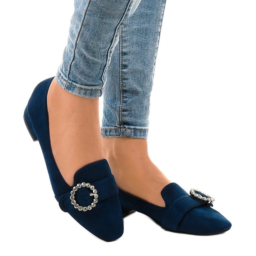 El interior de los zapatos está fabricado en piel ecológica, lo que aumenta la comodidad de uso y el cuidado de los pies. El color azul marino del ante y la suela negra crean un conjunto armonioso, y los pedrería adicionales añaden brillo y sofisticación.
