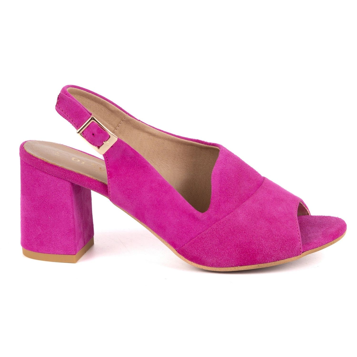 Detalles: Olivier Tacones altos para mujeres N1818 Sandalias hechas de cuero de gamuza natural Fucsia rosado