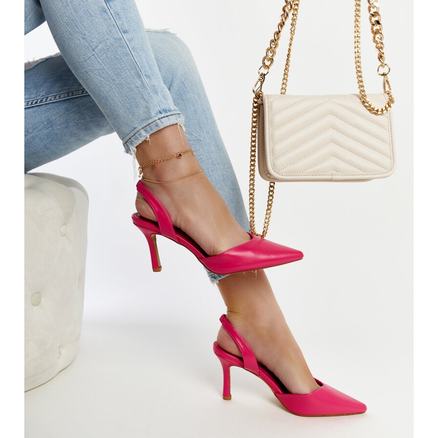 La altura del tacón de 9 cm añadirá unos centímetros a cualquier estilismo y alargará ópticamente tus piernas, haciéndote sentir segura y femenina. Hechos de cuero ecológico, estos tacones altos no solo son un placer para los fanáticos de la moda, sino también una opción respetuosa con el medio ambiente. La suela de plástico beige combina a la perfección con el tono rosa, creando un conjunto armonioso.