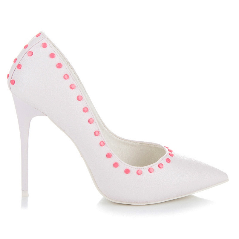 Presentamos los tacones altos Vices New Collection blancos: un accesorio elegante que no debe faltar en el armario de ninguna mujer. Estos sofisticados zapatos de salón con tacón de 11 cm se distinguen no sólo por su diseño estilizado, sino también por su original decoración en forma de lunares rosas, que les confieren un carácter único.