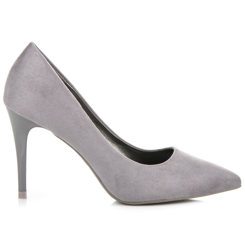 La altura del tacón de 9,5 cm aporta elegancia y resalta la figura, convirtiéndolos en un complemento perfecto para cualquier estilismo. El color gris y la ausencia de estampado hacen que estos tacones altos sean universales y combinen tanto con vestidos como con pantalones. ¡Elige nuestros tacones altos de ante gris y añade un toque de lujo a tu guardarropa!