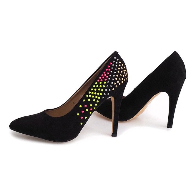 Los zapatos están fabricados de un material parecido al ante, lo que les confiere un carácter único. Un tacón alto combinado con una puntera en punta hace que cualquier estilismo sea más sofisticado. Una ventaja adicional es el elegante estampado en el exterior, formado por pequeños pedrería de colores, que aporta originalidad y hace que estos tacones altos destaquen entre los demás.