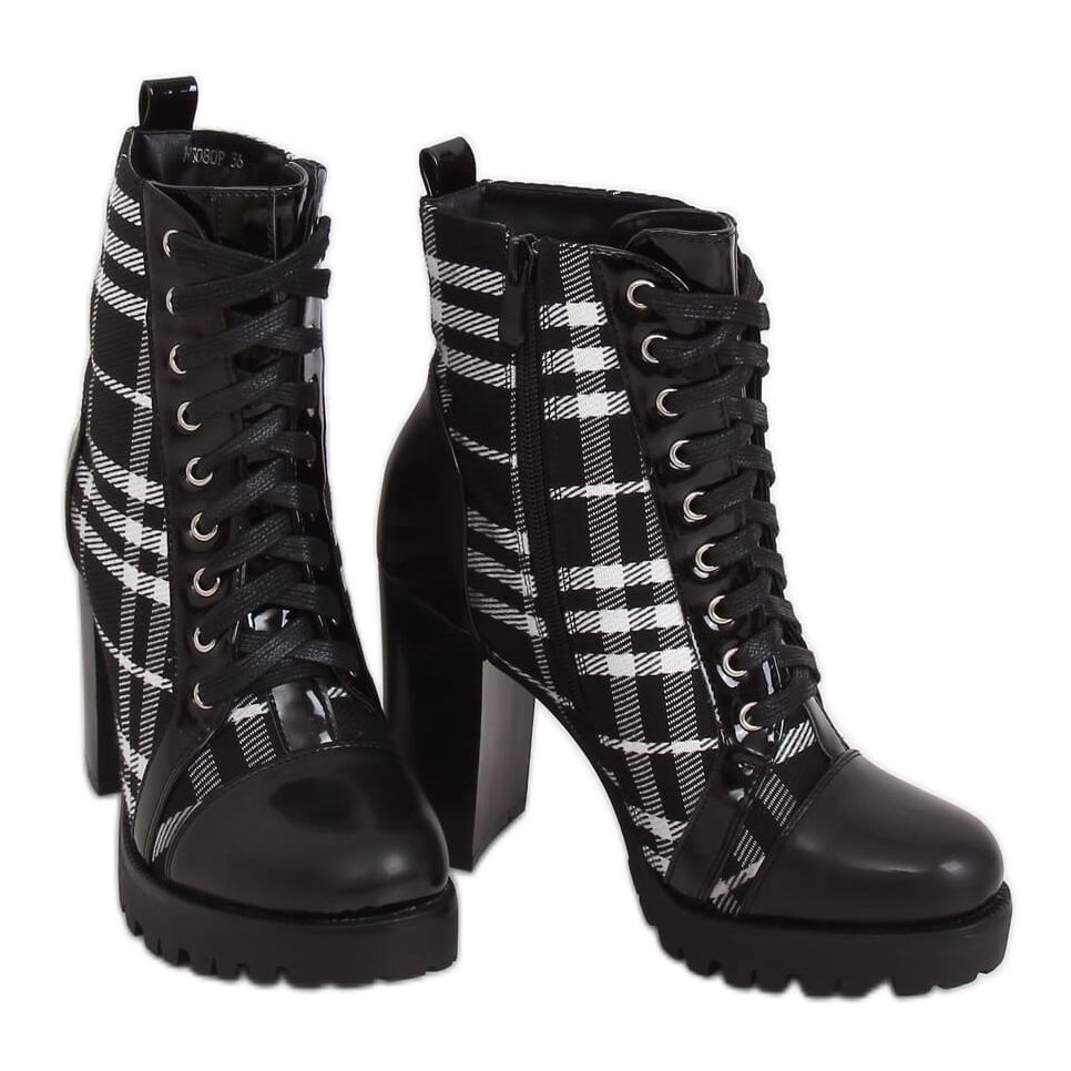Presentamos unos botines de tacón alto a cuadros negros únicos NS080P Black: una excelente opción para las mujeres que valoran la elegancia y la comodidad. Estas elegantes botas tienen un tacón de 9,5 cm y una plataforma de 2 cm de altura, lo que les da un carácter moderno y al mismo tiempo garantiza comodidad al usarlas.