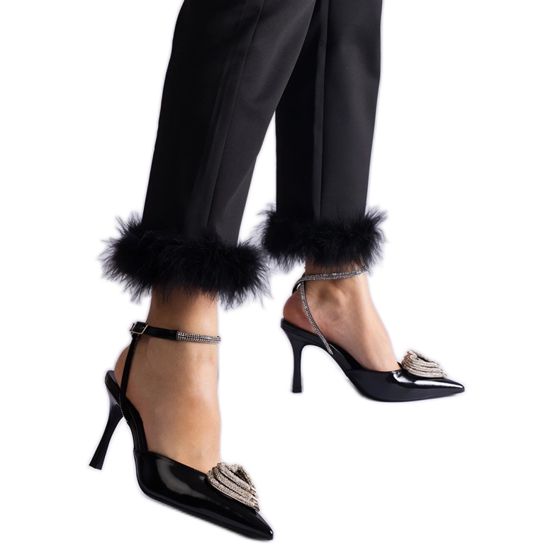 Inna marka Tacones negros con tacón abierto decorado con circonitas.
