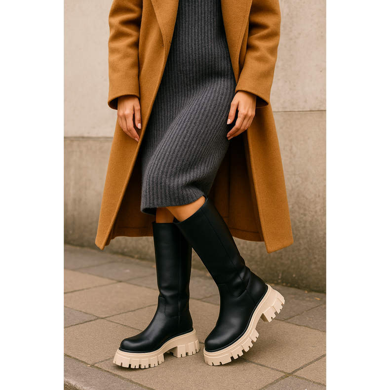 ¡Las suelas masivas son un éxito absoluto del invierno 2025! Las botas en una suela gruesa de tractores no solo agregan centímetros de alto, sino que también aseguran estabilidad en superficies resbaladizas. Esta tendencia se ajusta perfectamente a la estética de Gorpcore, combinando la funcionalidad con el estilo urbano. Elija modelos con una suela contrastante: las botas negras con una suela blanca o beige crean un efecto visual interesante. Estos zapatos serán perfectos en combinación con abrigos de gran tamaño y vestidos de lana.