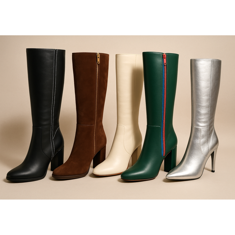 El invierno 2025 es un momento de materiales de alta calidad. El cuero natural sigue siendo el líder indiscutible: es duradero, transpirable y sale maravillosamente. La gamuza les da a los cosacos un aspecto elegante y suave, pero requiere un cuidado adecuado. El cuero barnished es una opción para las personas a las que les gusta brillar, mientras que los acabados mate son más universales. Los materiales veganos que imitan la piel también se están volviendo cada vez más populares, mientras que son ecológicos.