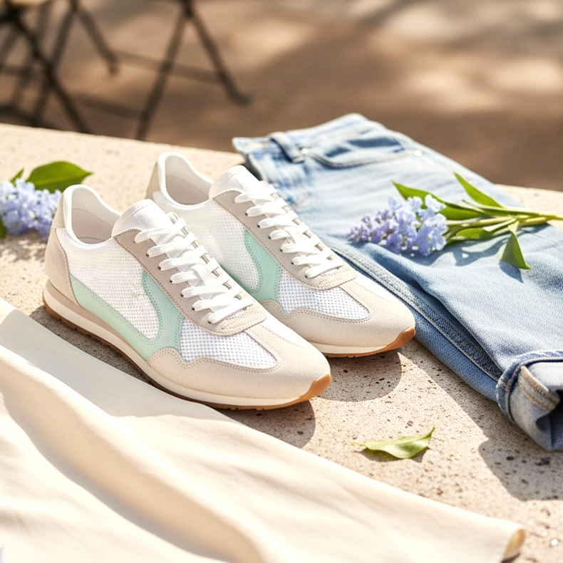 Esta tendencia encaja perfectamente en la filosofía general de la temporada: menos gritos, más clase. Las zapatillas de deporte entalladas quedan estupendas con pantalones de pernera recta, vaqueros remangados y elegantes vestidos midi. Esta combinación de informalidad deportiva con sofisticación femenina es uno de los acentos de estilo más fuertes de la primavera de 2026. Elija modelos en tonos blanco, crema o pastel, menta o lavanda, para aprovechar al máximo el espíritu de esta tendencia.
