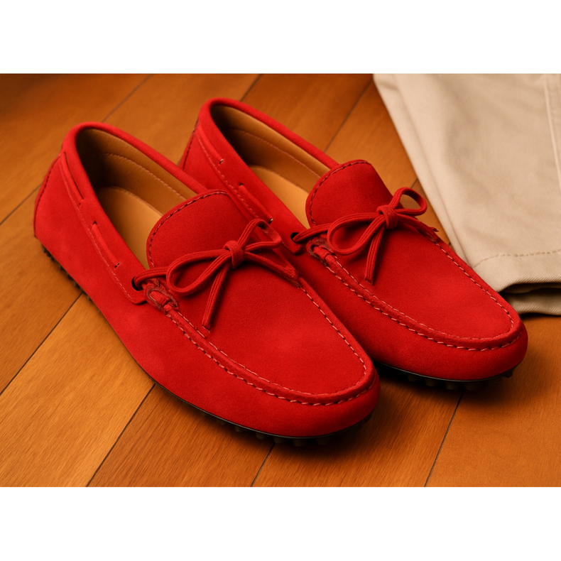 Mocasines con borlas de ante + jeans oscuros + polo/camisa casual.