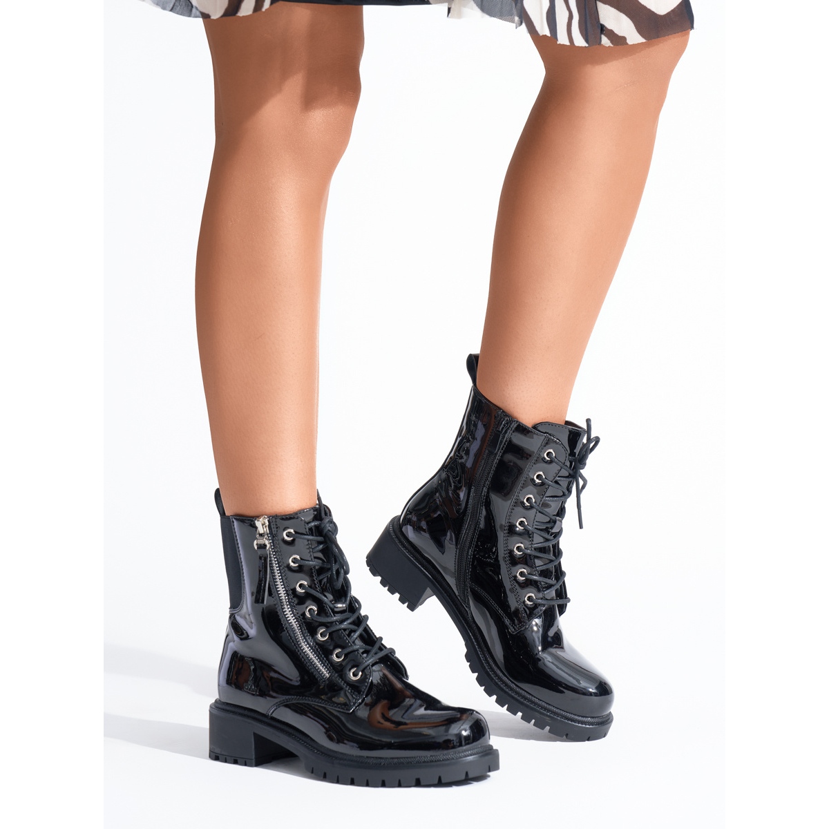 Los detalles de cremallera y cordones son soluciones prácticas que permiten ponerse y quitarse los zapatos fácilmente. Los trabajadores de charol negros para mujer serán un complemento perfecto para tu guardarropa y combinarán con muchos estilos, desde jeans hasta vestidos.