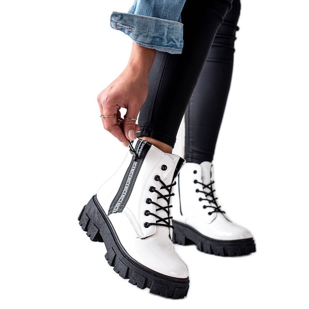 Presentamos botas de plataforma con cordones blancas del renombrado fabricante TRENDI: la elección perfecta para las mujeres que desean combinar comodidad con estilo moderno. Estas botas para mujer se caracterizan por un tacón suave y cerrado y un excelente aislamiento, lo que las convierte en el compañero perfecto en los días más fríos.