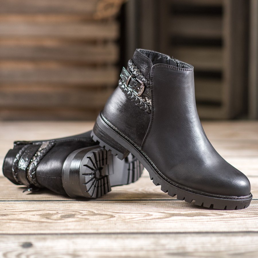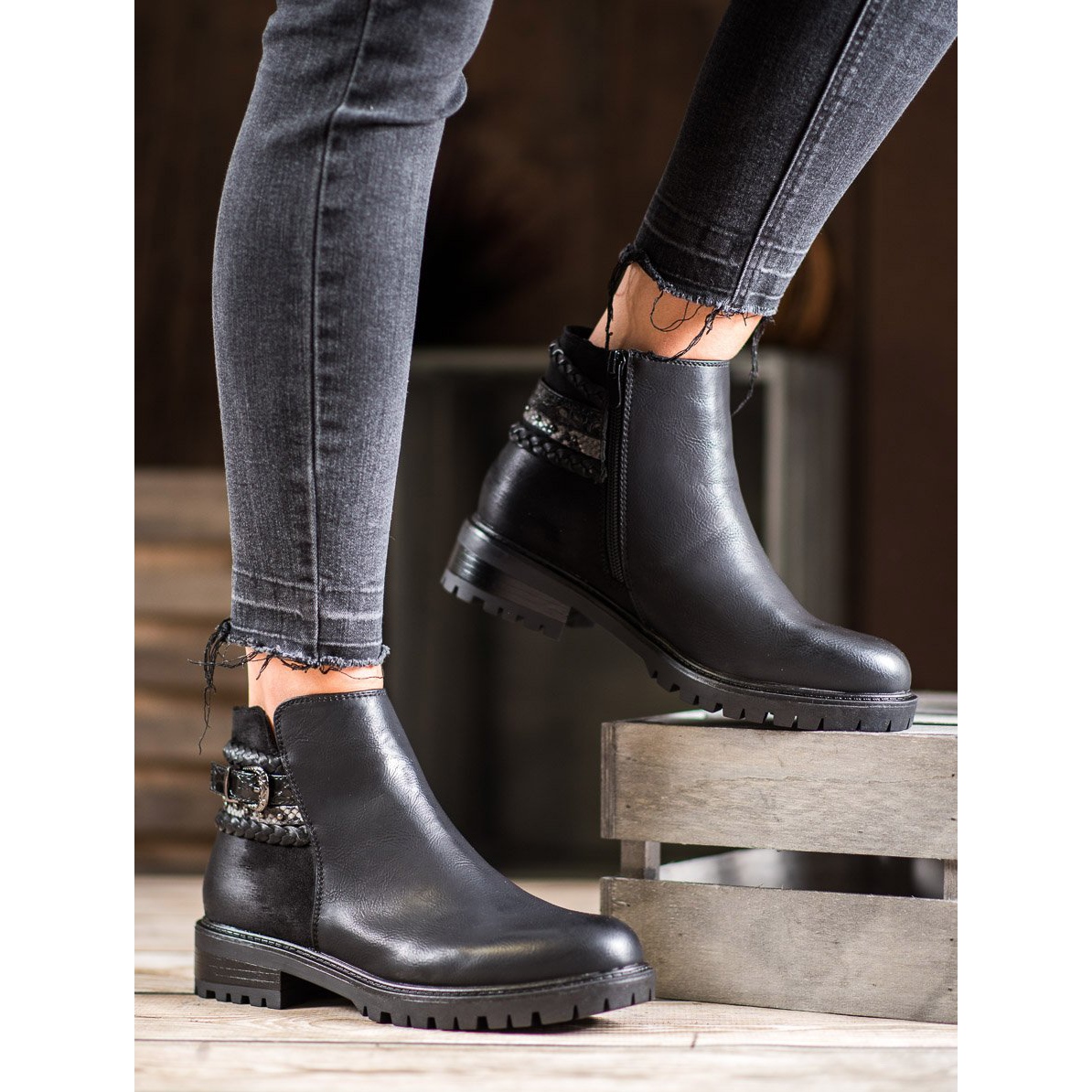 Descubre un estilo único con los bajos bajos Erynn, que combinan elegancia y un look casual. Estos botines de mujer en un clásico color negro son una elección perfecta para la temporada otoño/invierno. Hechos de estético cuero ecológico, brindan no solo un aspecto moderno, sino también comodidad de uso.