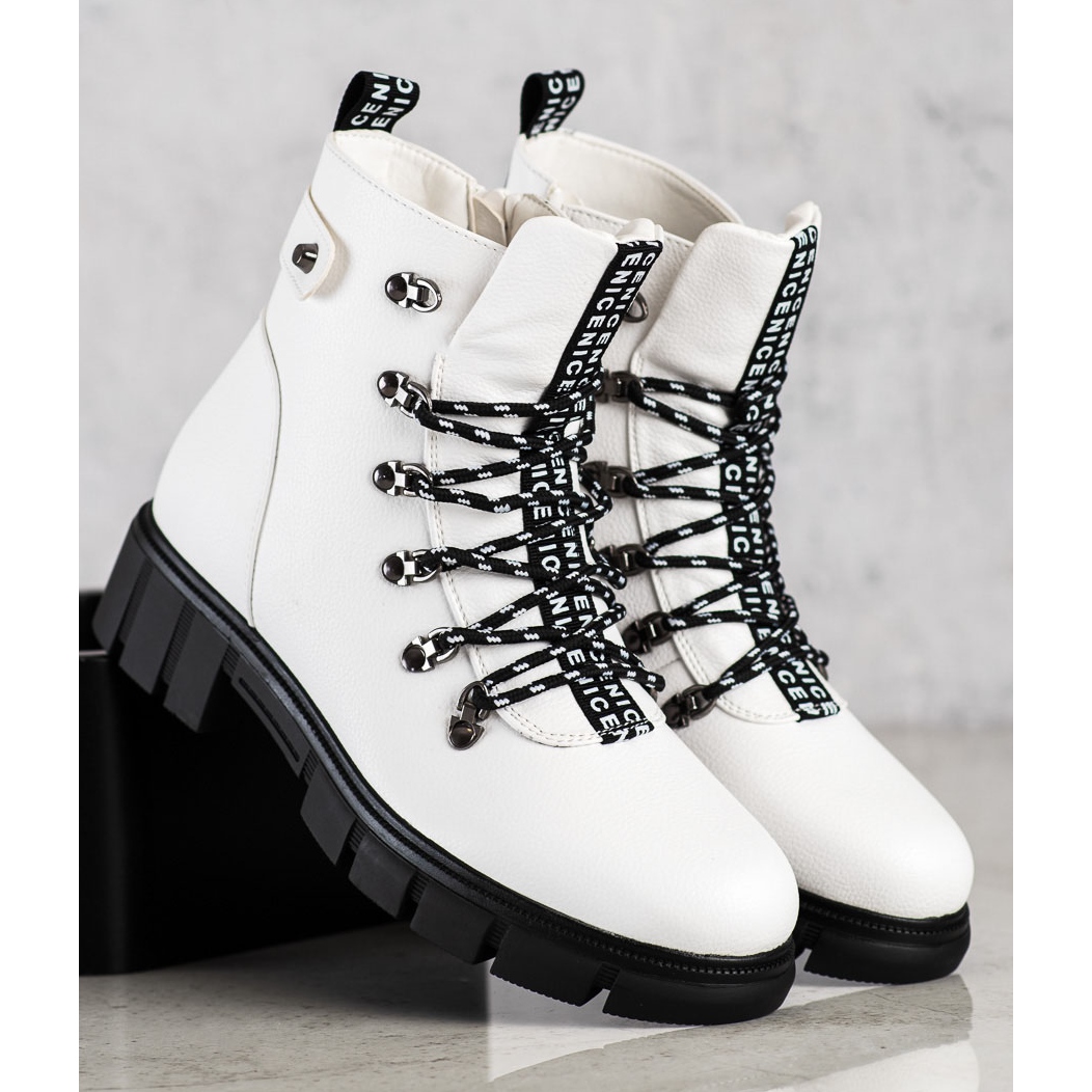 Los trabajadores con plataforma VINCEZA blancos son una elección perfecta para toda mujer a la moda que valora la comodidad y el estilo. Equipados con todas las características necesarias, satisfacen las necesidades de la mujer moderna que no teme jugar con la moda, centrándose en la comodidad. ¡Añádelos a tu colección y disfruta de un look moderno durante todo el otoño y el invierno!