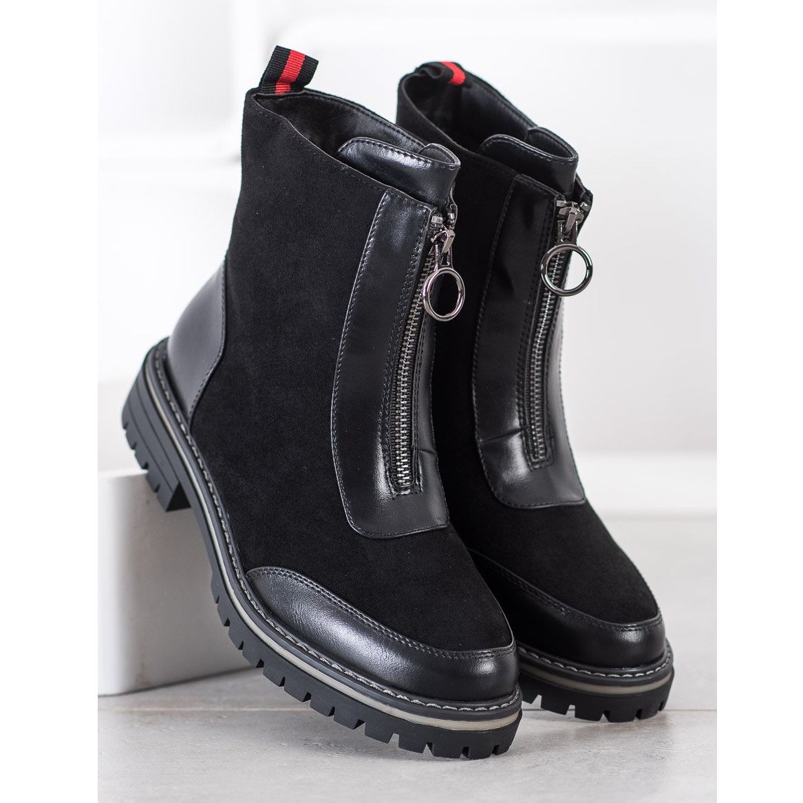 La altura de la parte superior, que llega hasta el tobillo (14-15 cm) y el elegante tacón plano (4 cm), hacen que estos zapatos no sólo luzcan bonitos, sino que también garantizan comodidad en el día a día. Gracias al aislamiento interno, tus pies estarán protegidos del frío, lo que los convierte en una opción ideal para la temporada otoño/invierno.