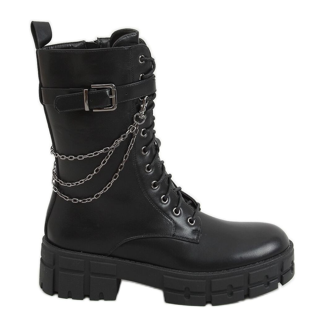 El acabado liso en negro y el impresionante colgante de cadena y hebilla les dan un carácter único, perfecto tanto para estilos casual como más elegantes. El interior de las botas está forrado con una delicada piel, lo que las hace cómodas de usar incluso en los días más fríos.