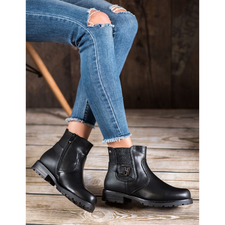 Gogo Workers con hebilla en color negro universal son zapatos perfectos para mujeres que valoran la comodidad y un look moderno. Fabricados en piel ecológica de alta calidad, estos botines se distinguen no sólo por su estética, sino también por su funcionalidad, lo que los convierte en una opción ideal para los días más fríos.