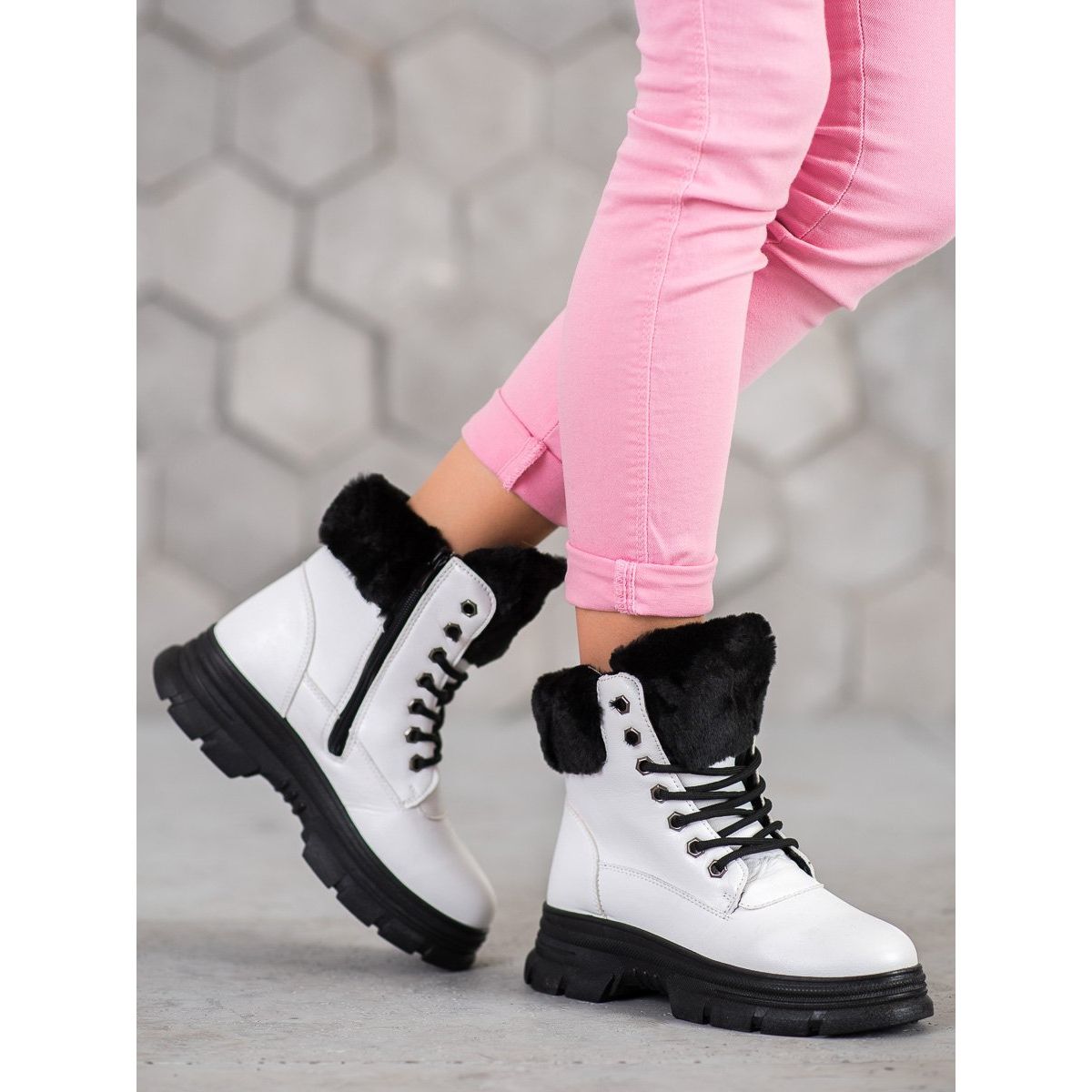 He aquí una propuesta perfecta para los amantes de los zapatos modernos y cómodos para los días más fríos: los trabajadores SHELOVET blancos con pelo. Estas elegantes botas con un tacón ancho de 5 cm y una plataforma de 3 cm garantizan comodidad incluso durante largas caminatas. Hechos de un material estético similar al cuero, brindan no solo una apariencia atractiva, sino también durabilidad.