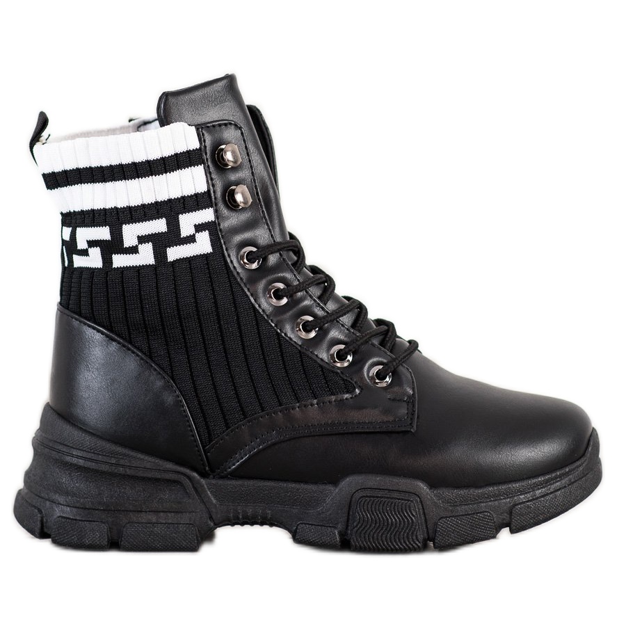 Las trabajadoras SHELOVET de estilo casual y deportivo, tienen la punta redonda y el talón incorporado y suave, lo que garantiza comodidad independientemente del tiempo de uso. La plataforma alta, de 5 cm de altura, no sólo añade estilo, sino que también aumenta la comodidad al caminar. El cierre con cordones y una práctica cremallera permite ponérselo fácilmente y el material exterior de piel ecológica garantiza durabilidad y facilidad de cuidado.