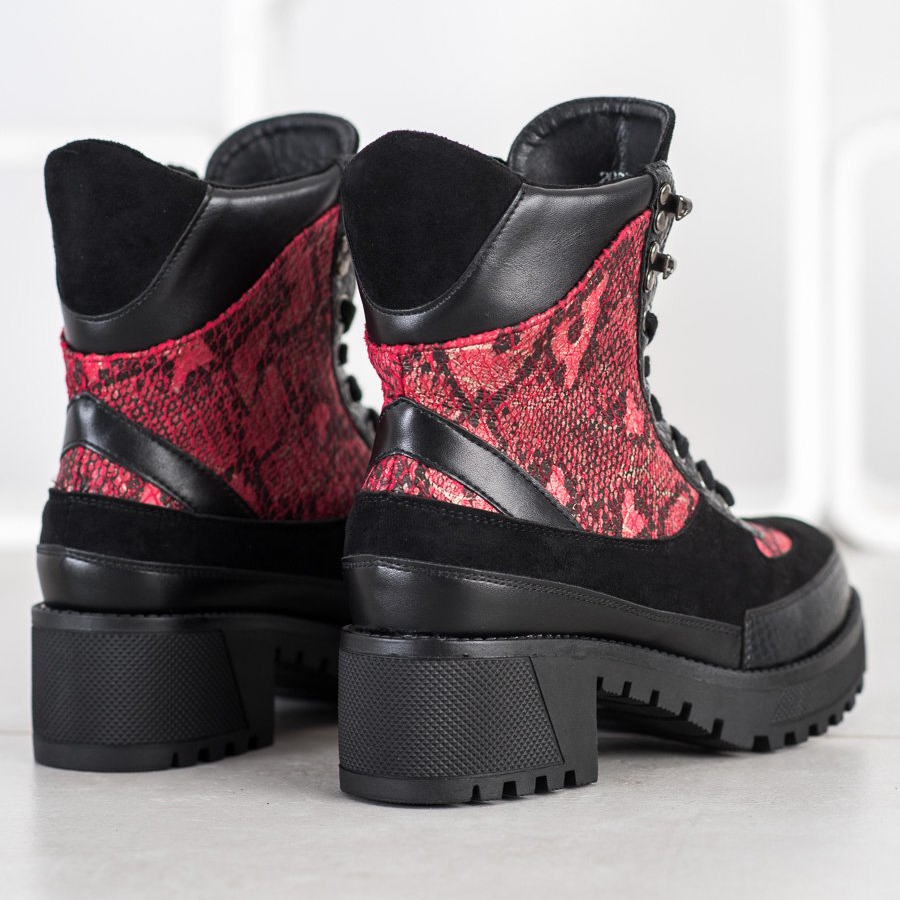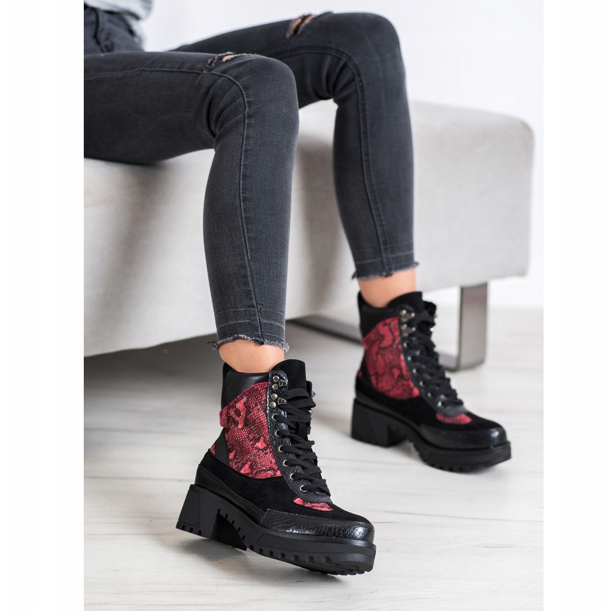 Conozca los modernos botines Groto Gogo Rockowe Workery en una combinación de colores única en negro y rojo. Estos elegantes zapatos son una combinación perfecta de elegancia y comodidad, perfectos para el estilo diario y para looks rockeros.