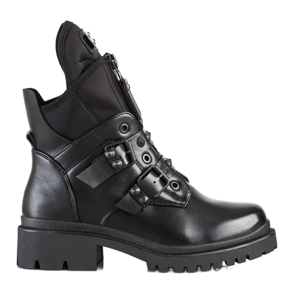 La cremallera y las hebillas decorativas le dan a los zapatos un estilo único, combinando perfectamente con el estilo casual y rockero. La suela con banda de rodadura de material sintético proporciona un buen agarre, lo que permite moverse cómodamente incluso en condiciones más difíciles.