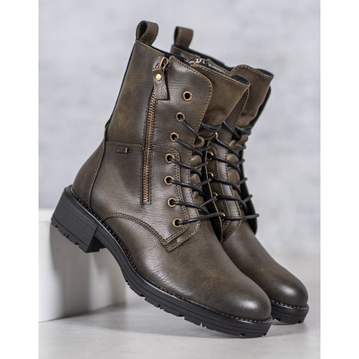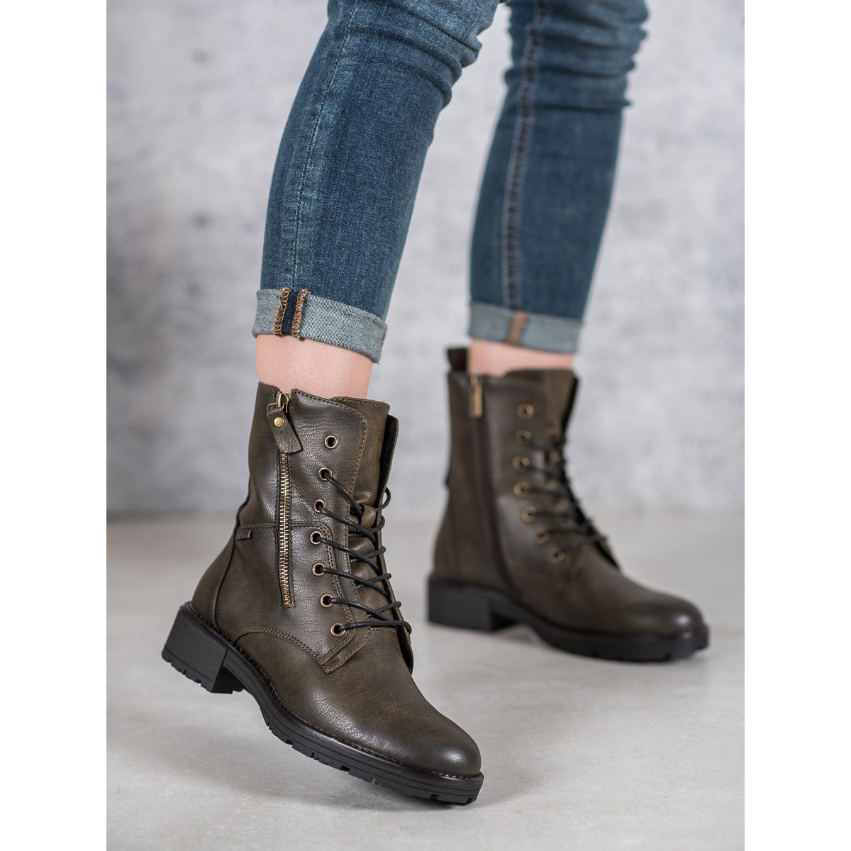 Descubre trabajadores únicos de Vinceza en un hermoso color verde podrido, que seguramente se convertirá en tu elemento favorito de tu guardarropa. Estos botines de mujer combinan inspiraciones militares de moda con el estilo cotidiano, lo que los hace adecuados para muchos estilos diferentes, tanto informales como más rockeros.