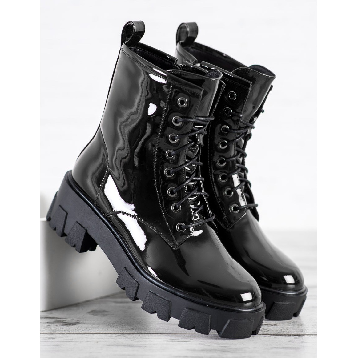 Descubra el estilo único de la colección Fashionable de Goodin: botas de trabajo lacadas en un elegante color negro. Estos botines de mujer combinan estilo y comodidad, combinando a la perfección con las últimas tendencias.
