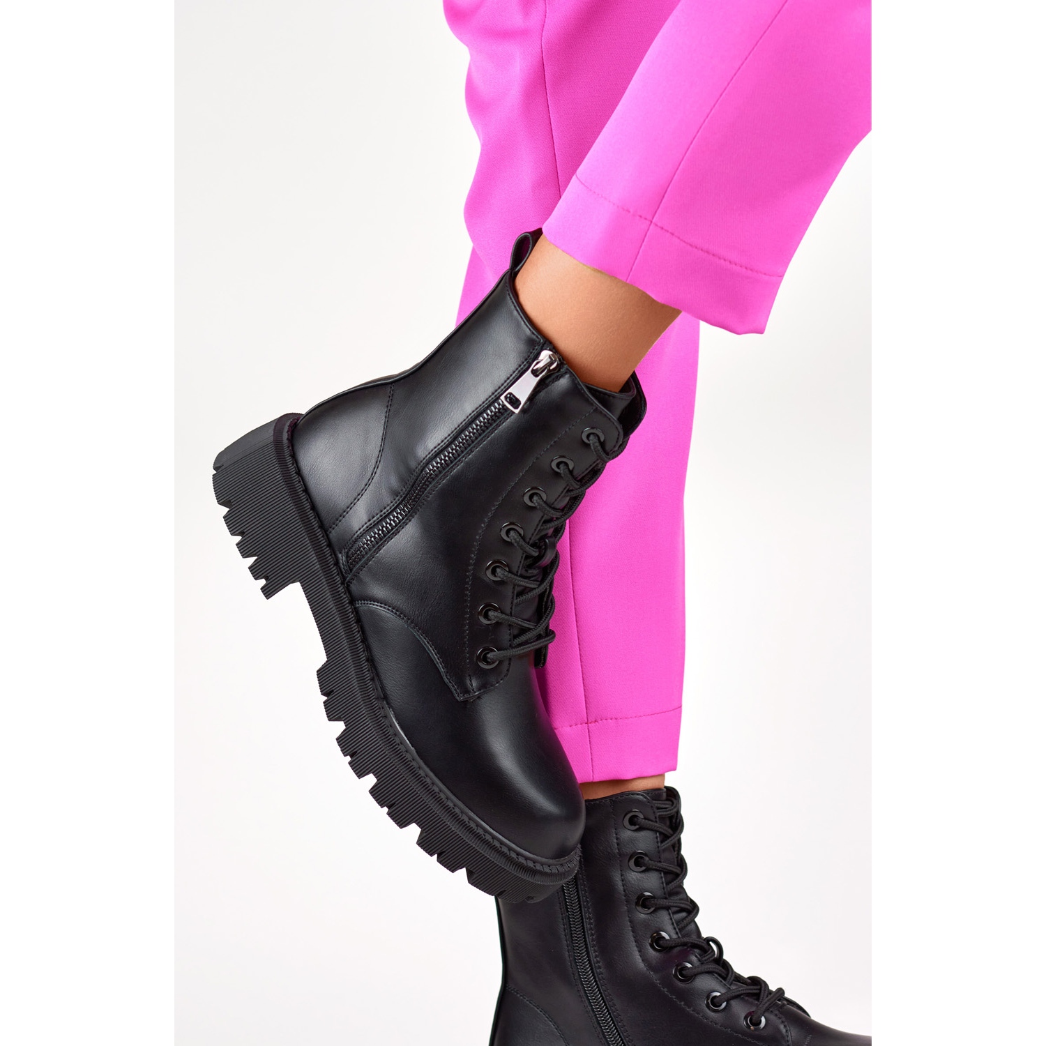 Estas botas de trabajadora negras son la solución perfecta para el otoño y el invierno, creadas para mujeres que valoran el estilo y la comodidad. Estos trabajadores sofisticados combinan un diseño moderno con soluciones prácticas. El cuero ecológico les confiere un carácter elegante, mientras que el aislamiento textil y la plantilla garantizan la comodidad de uso. La longitud de la caña de 14 cm confiere a los zapatos un discreto encanto y al mismo tiempo protege del frío. Los cierres de cremallera y cordones permiten ponérselo y ajustarlo fácilmente a las necesidades individuales. La punta redonda los hace universales y encajan perfectamente en varios estilos. Estos trabajadores no sólo son prácticos en los días más fríos, sino que también son un complemento moderno para la vestimenta cotidiana. Descubra la armonía entre estilo y funcionalidad eligiendo estos elegantes trabajadores para las próximas tendencias de temporada.