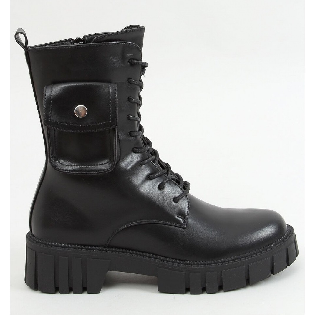 ¿Botines con cordones de mujer? Zapatos de trabajador con tacón ancho de 5 cm de altura. El modelo tiene un corte clásico con un bolsillo original que le da a los zapatos ese "algo" :) ¡El estilo súper moderno y cómodo está listo! Están fabricados en piel ecológica con un atractivo acabado mate. El interior está forrado con una delicada piel. Las botas tienen un práctico cierre de cremallera en el lateral de la pala.