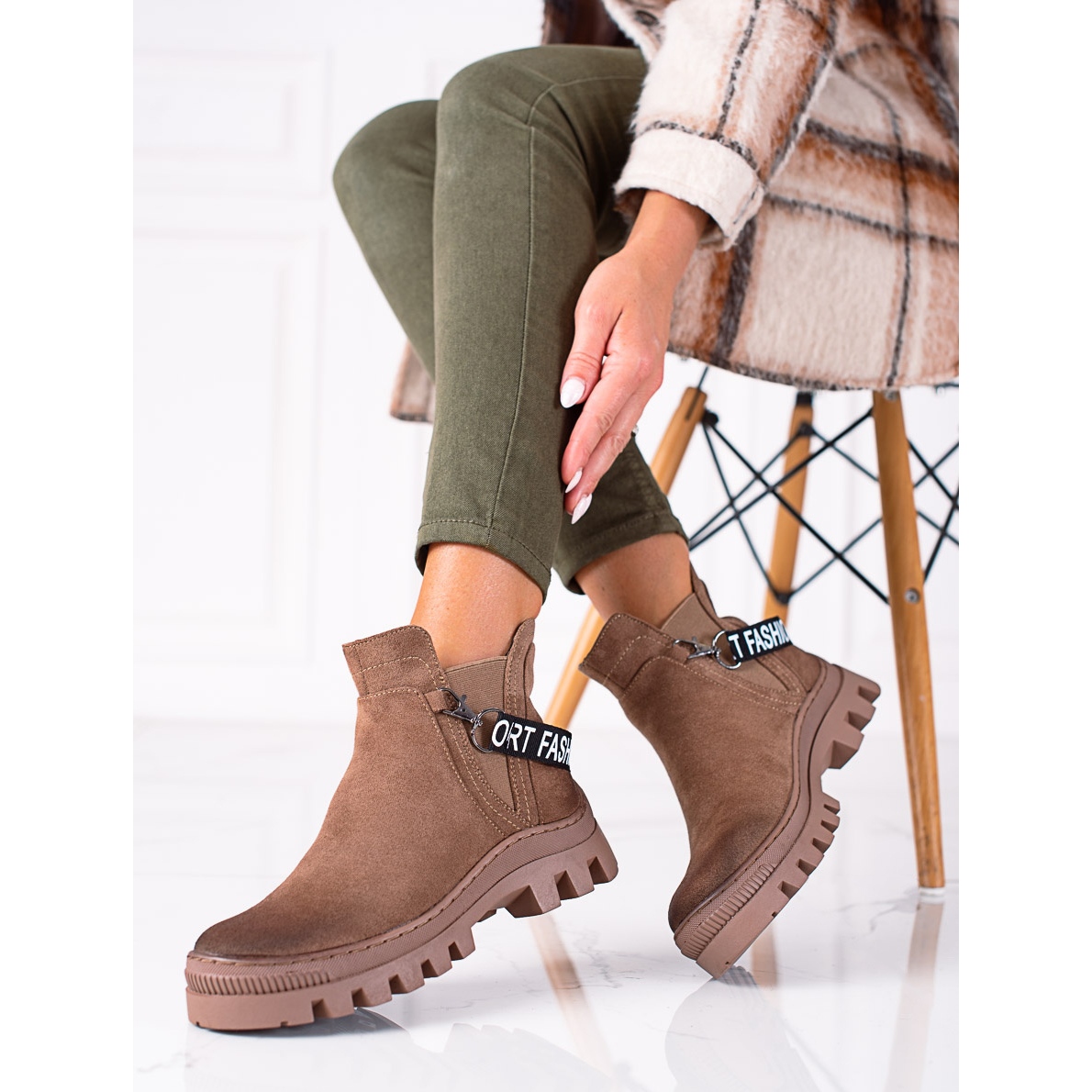 El modelo disponible en el tono Dk.beige está confeccionado en ante ecológico, que no sólo llama la atención, sino que también garantiza la comodidad en el uso diario. La altura superior de 12 cm cubre perfectamente el tobillo y el talón está rígido, lo que garantiza estabilidad y comodidad de uso.