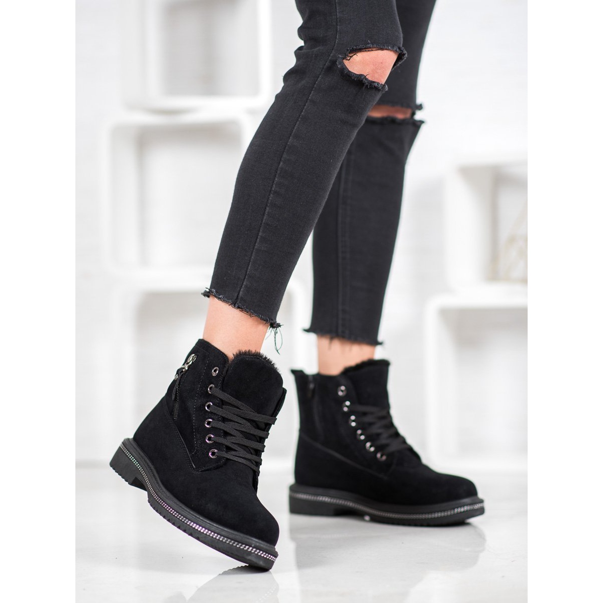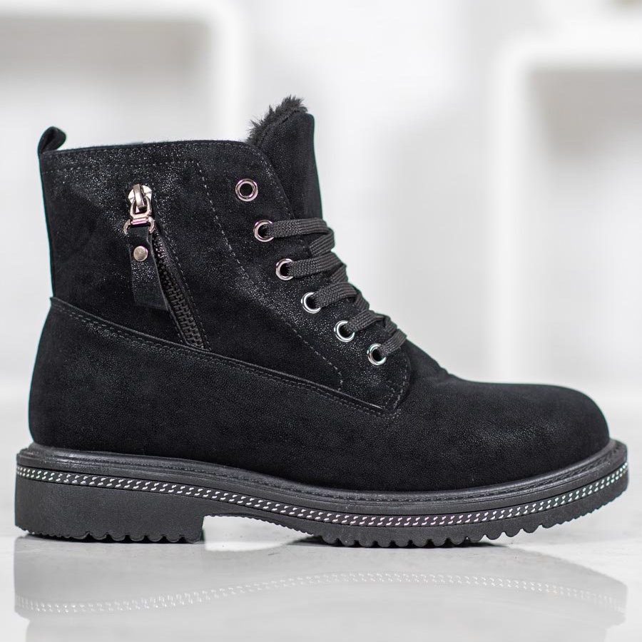 SHELOVET Trappers With Glitter en negro son una propuesta ideal para las mujeres que quieren combinar un look moderno con comodidad. Estas modernas zapatillas se caracterizan por una parte superior más alta que protege perfectamente los pies de las inclemencias del tiempo. Gracias a los cordones se pueden ajustar fácilmente a la forma individual del pie, lo que garantiza comodidad durante todo el día.