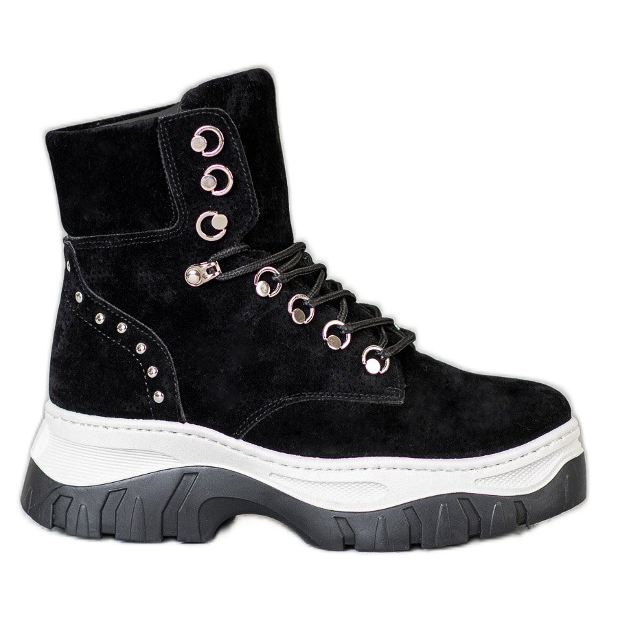 Una enorme plataforma de 4 cm de altura y un tacón plano de 6 cm garantizan la comodidad de uso, lo que hace de estas botas el compañero ideal para todas las salidas cotidianas. Son perfectos para la temporada de otoño e invierno, ofreciendo estabilidad y comodidad incluso durante caminatas más largas. Gracias a la suela de plástico pisada, estamos seguros de que nuestros pasos serán confiados y seguros en diversas superficies.