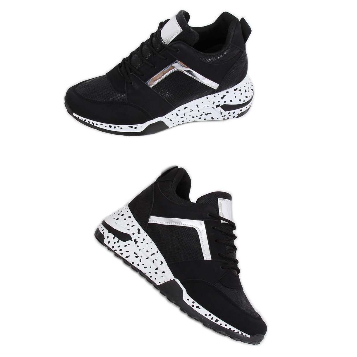 Los zapatos tienen un diseño original con una suela maciza de puntos, lo que los hace no sólo funcionales, sino también llamativos. Una ventaja adicional son las modernas inserciones con motivos de piel de serpiente y los detalles metálicos que les dan un carácter único. ¡Gracias a estos detalles, seguramente destacarás entre la multitud!