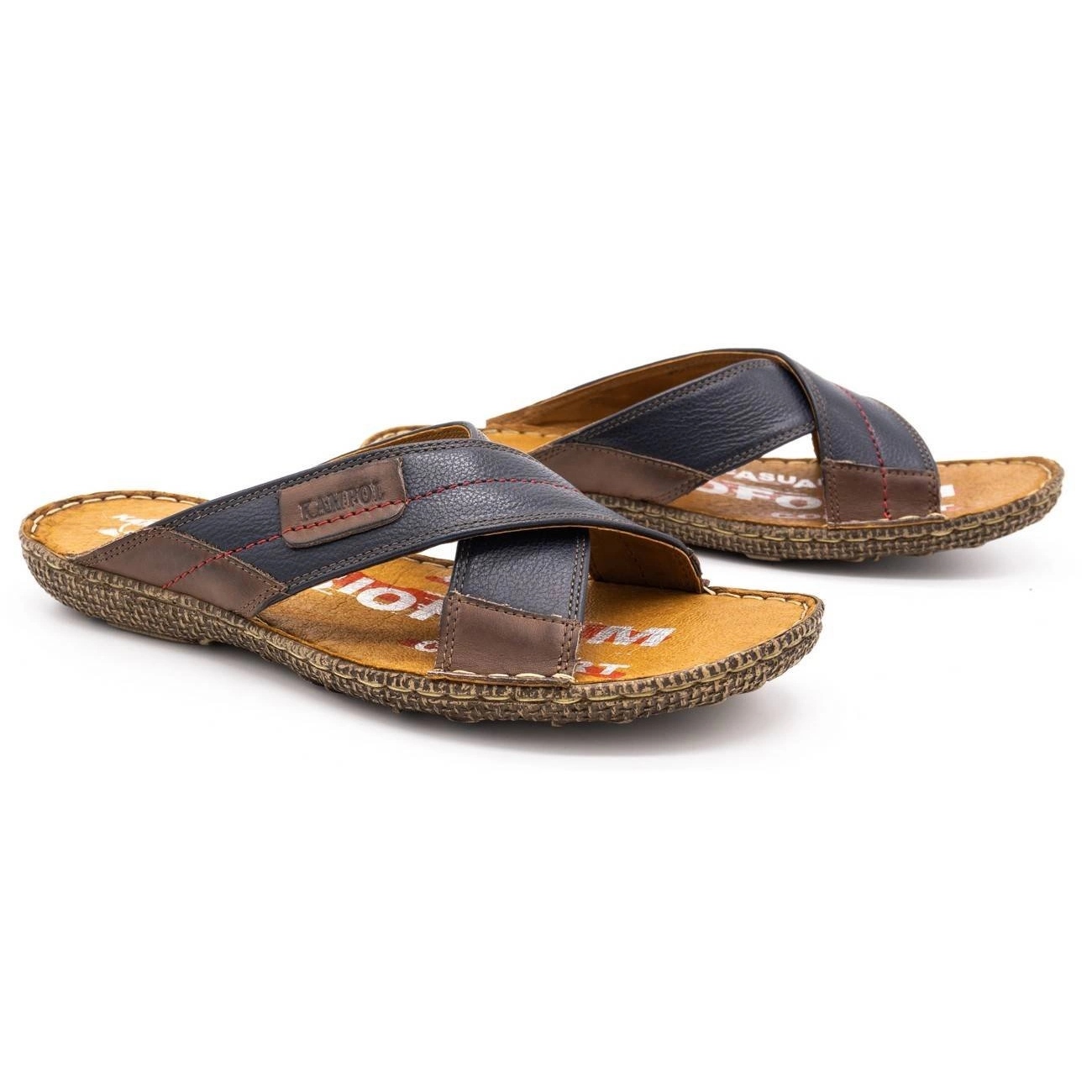 Kampol Kampol Zapatilla hombre piel 200 azul marino con marron marrón