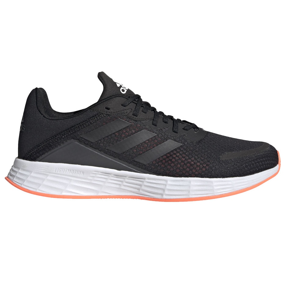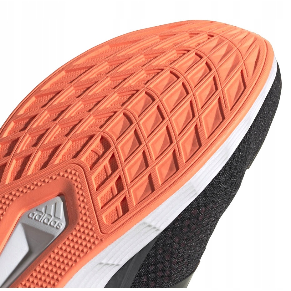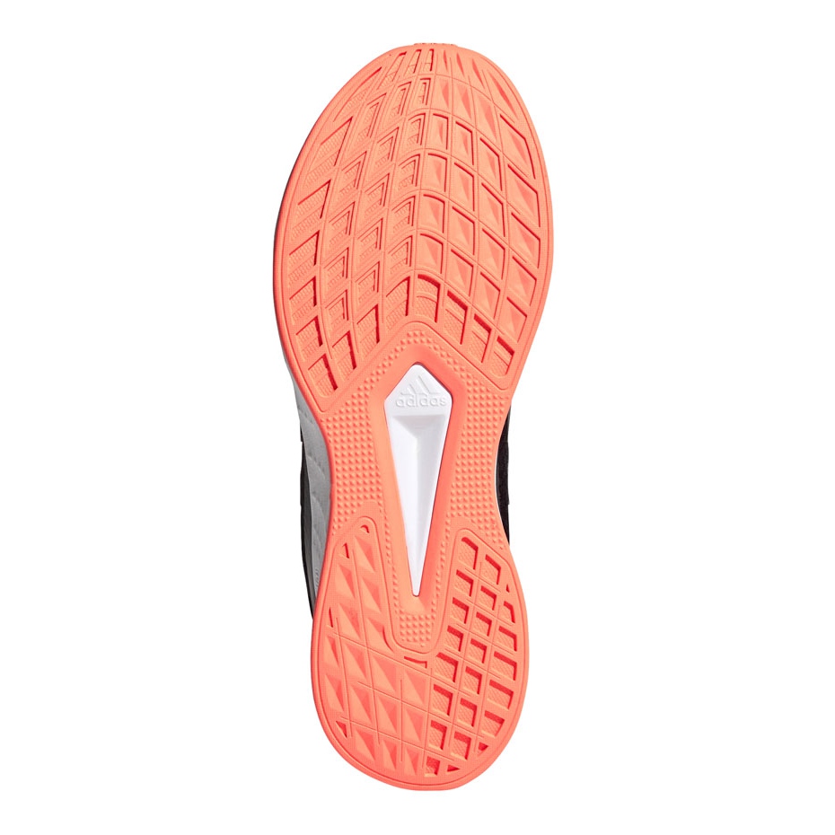 Zapatillas de running adidas para hombre fabricadas con materiales reciclados. Cordón tradicional. Parte superior de malla con superposición sin costuras. Suela de goma apta para su uso en cualquier superficie. Plantilla OrthoLite® y acolchado Lightstrike. Modelo negro con suela naranja.