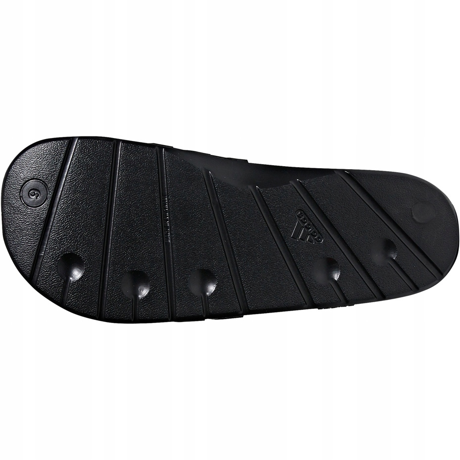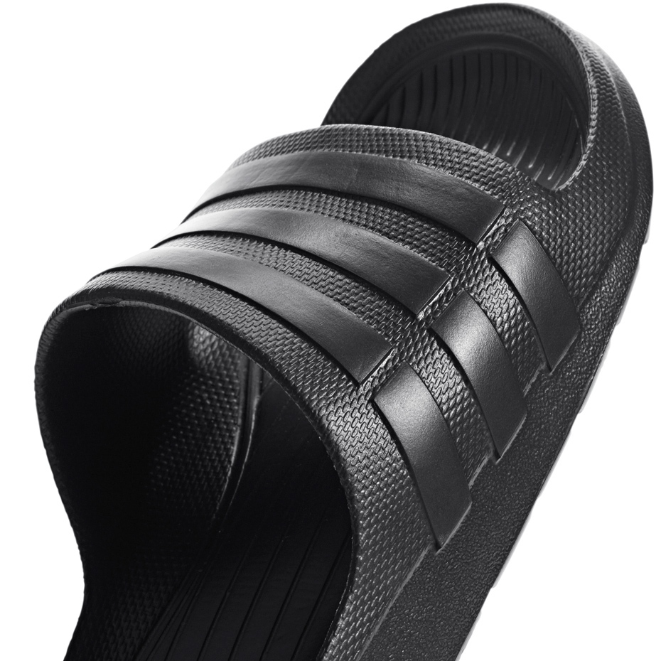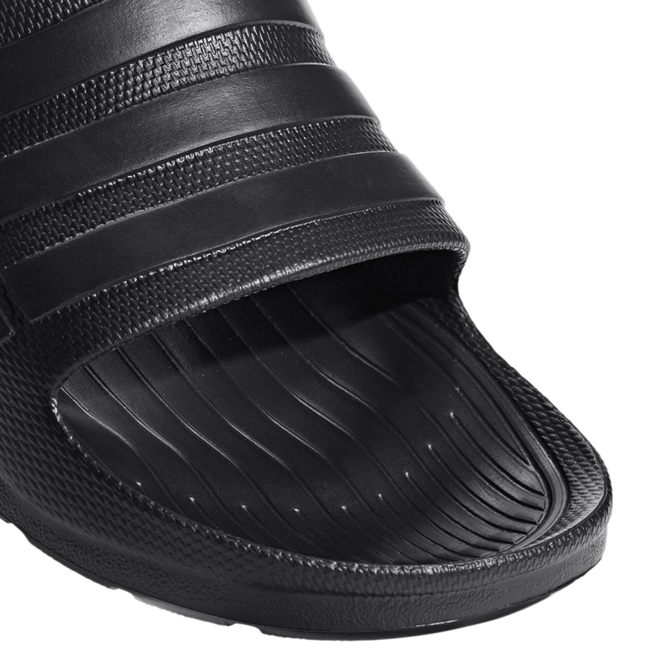 Pantuflas Duramo adidas Slide hechas de una mezcla de goma. Su forma hace que se adapten perfectamente al pie. Suela duradera y muy flexible. Perfecto para la piscina, pero también para el uso diario.