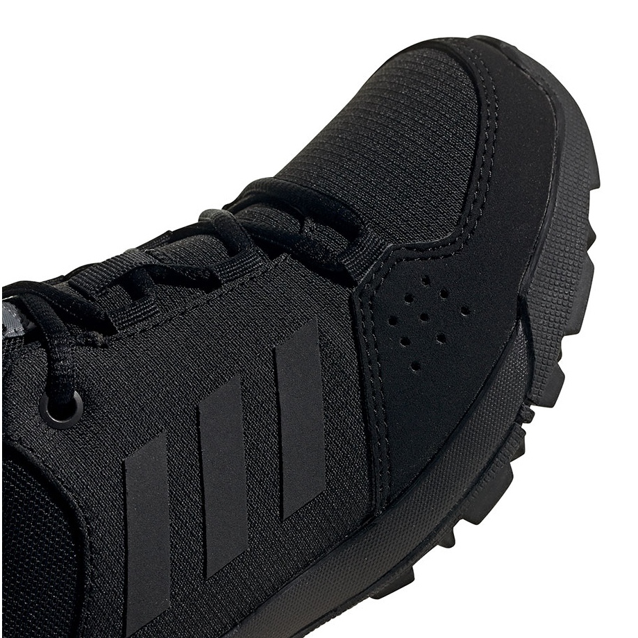 Los zapatos de trekking para niños demostrarán su valía durante el senderismo. Modelo clásico con cordones. La parte superior está respaldada por tecnología ripstop y un revestimiento anti-barro. La suela Triaxon tiene buena adherencia al suelo. La plantilla Adifit facilita la medición de la longitud del pie del niño. Modelo negro.