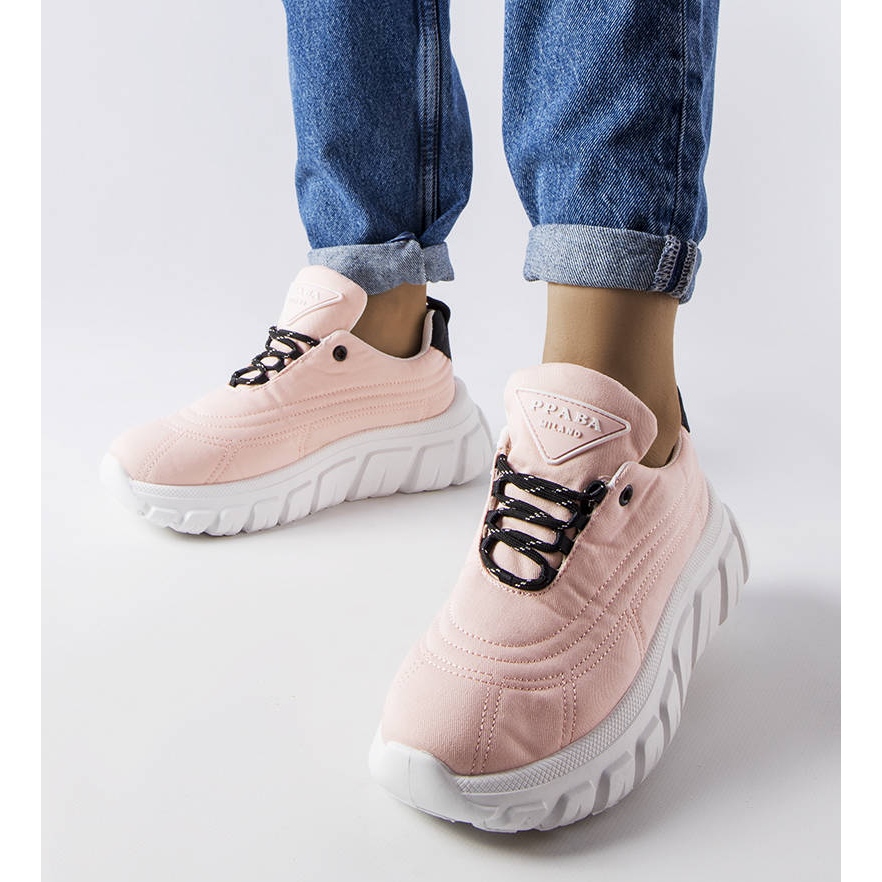 Las zapatillas tienen un moderno color rosa, que aporta frescura y energía, y la parte inferior de goma blanca garantiza no solo estabilidad, sino también una excelente absorción de impactos en cada paso. La puntera redonda y el cierre con cordones garantizan un ajuste óptimo al pie, y la plataforma alta de 5,5 cm hace que las zapatillas no sólo sean cómodas, sino que también alargan ópticamente las piernas.