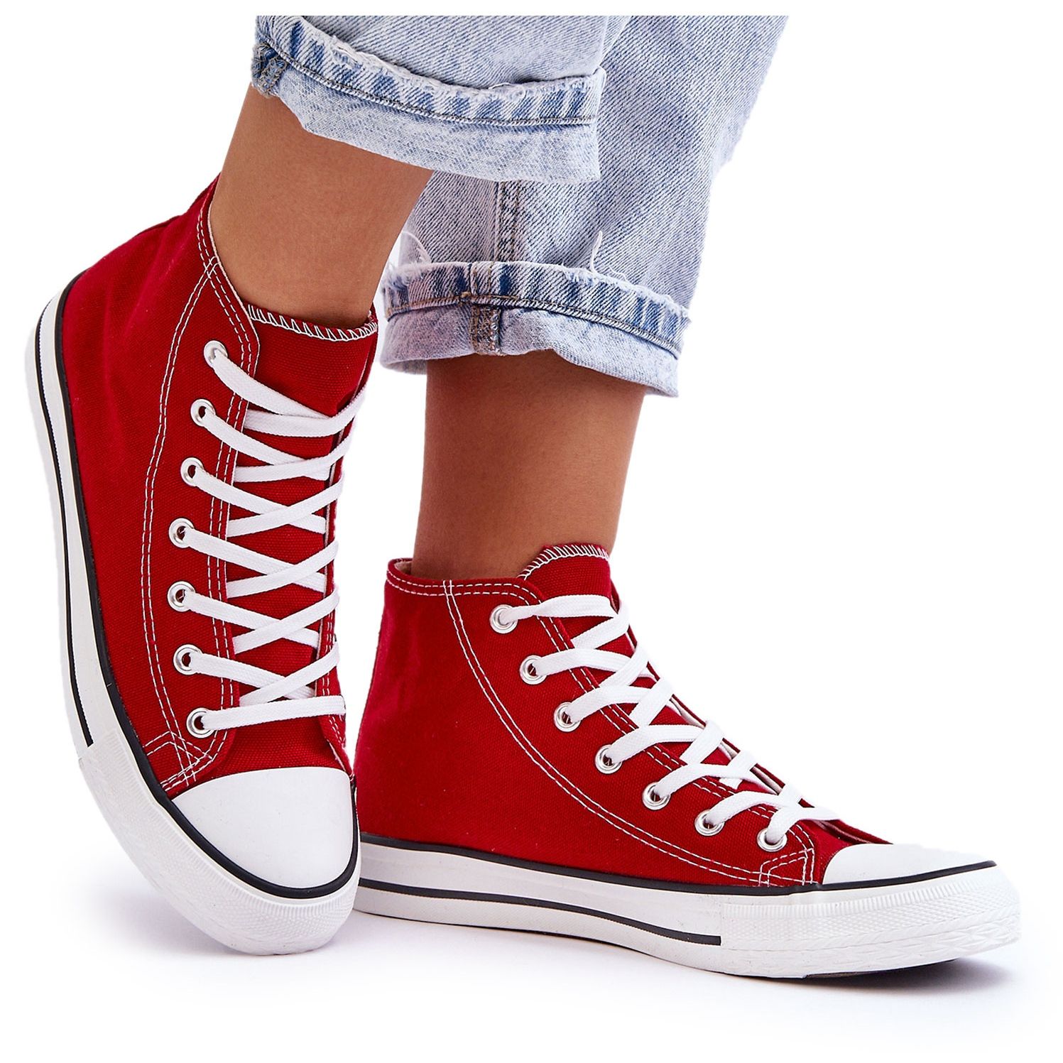 Las zapatillas de tobillo clásicas y atemporales en un color rojo intenso con acentos blancos. Hecho de tela duradera, con una suela de goma, no SLIP y un dedo de goma reforzado, perfecto todos los días, para estilos casuales y caminatas de la ciudad. Modelo destinado a un pie delgado; Al elegir un tamaño, siga la tabla de tamaño.